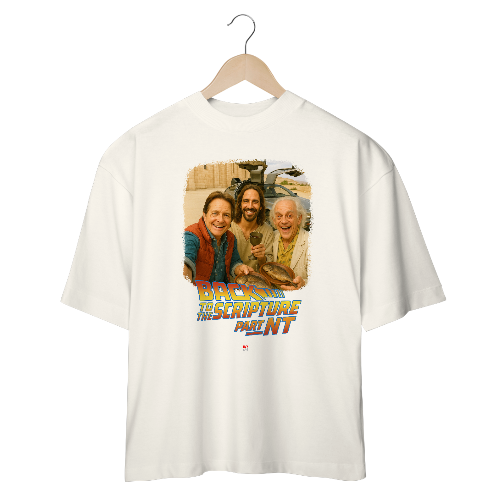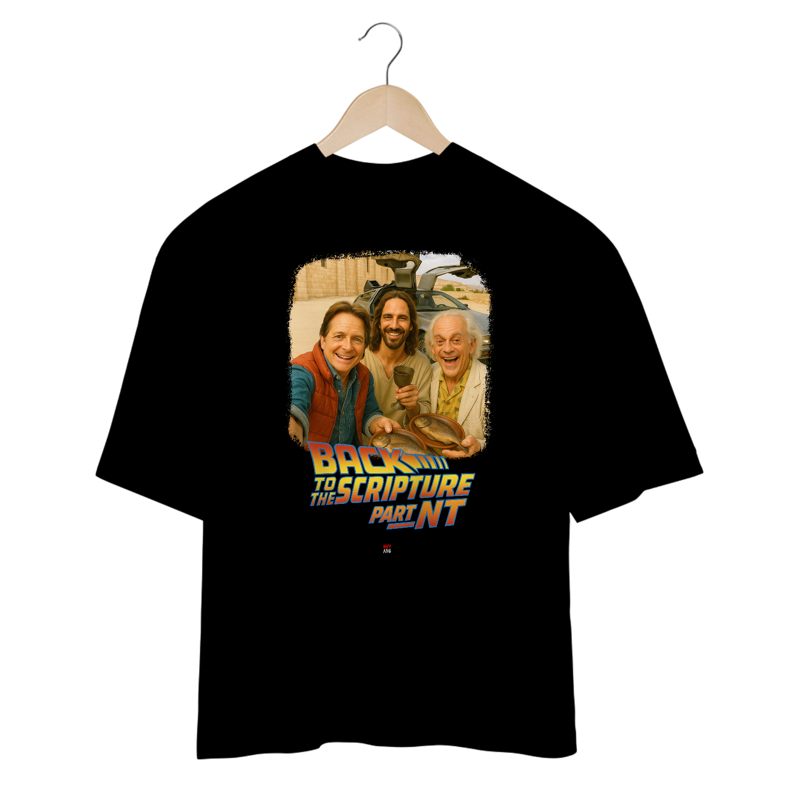 A HeavyAngélico apresenta essa estampa criativa e provocadora, unindo uma referência direta a um dos filmes mais icônicos da cultura pop com o chamado mais urgente da fé cristã: voltar para as Escrituras. A cena recriada traz Jesus ao lado dos personagens clássicos, segurando o pão e o cálice — apontando para a Nova Aliança.