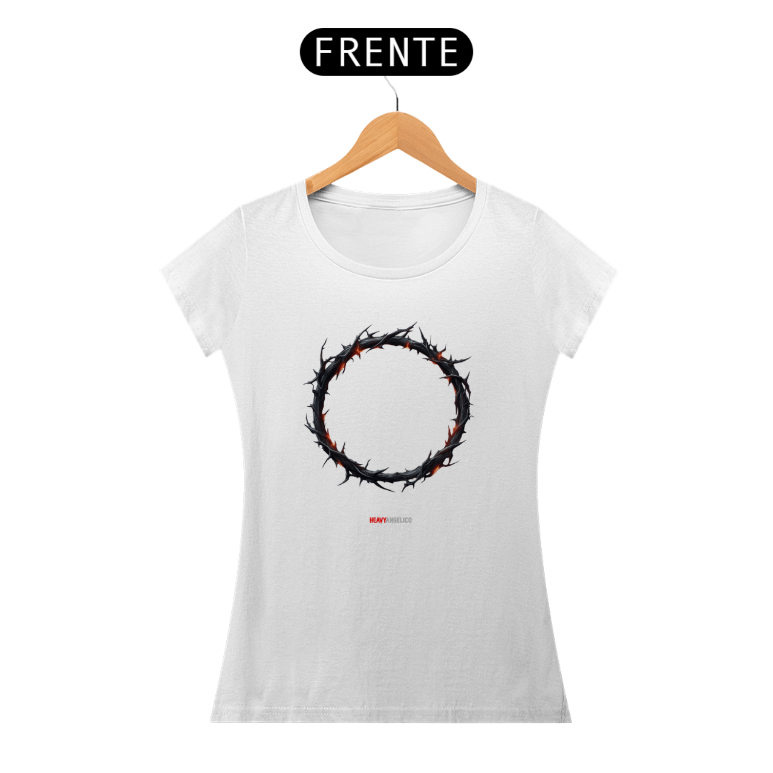A camiseta Crown of Thorns da HeavyAngélico traz um símbolo poderoso de fé e resiliência. Com uma ilustração impactante de uma coroa de espinhos envolta por chamas, ela representa o sacrifício de Cristo e o fogo purificador da redenção. O design arrojado mescla elementos de sofrimento e força, refletindo o poder espiritual que transcende qualquer dor. Para aqueles que enfrentam desafios com coragem e fé inabalável, essa camiseta é uma verdadeira expressão de força e devoção. Ideal para quem deseja carregar consigo um símbolo de superação e a luz divina.