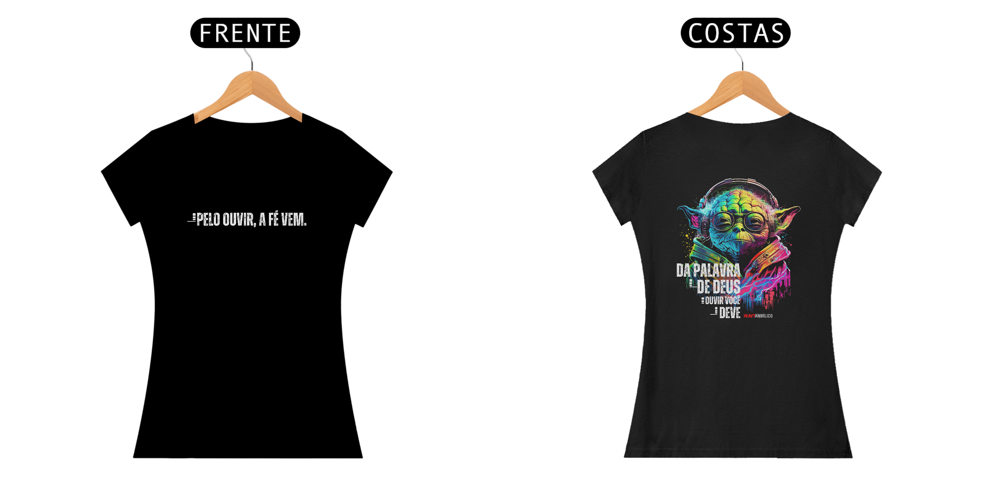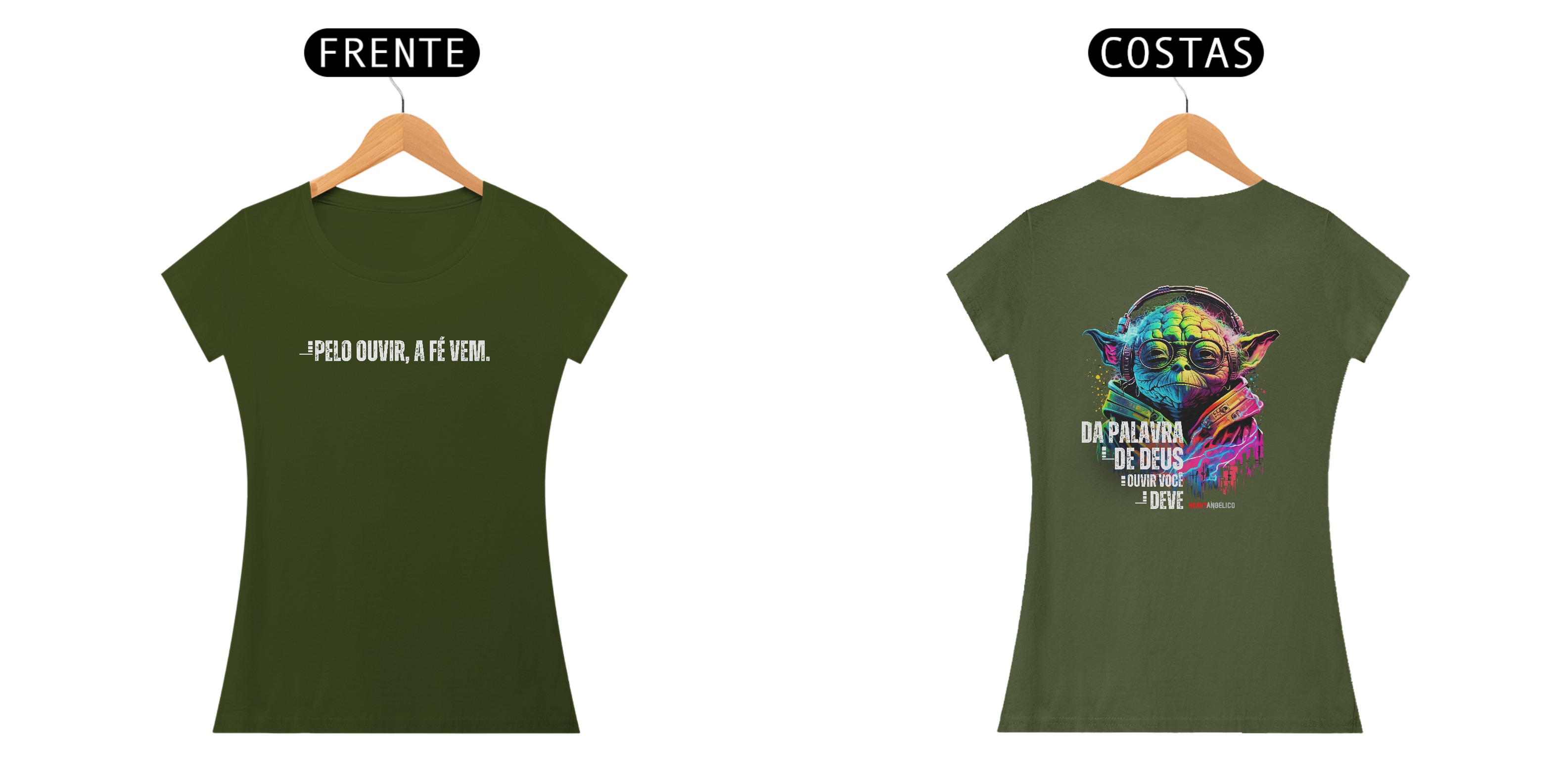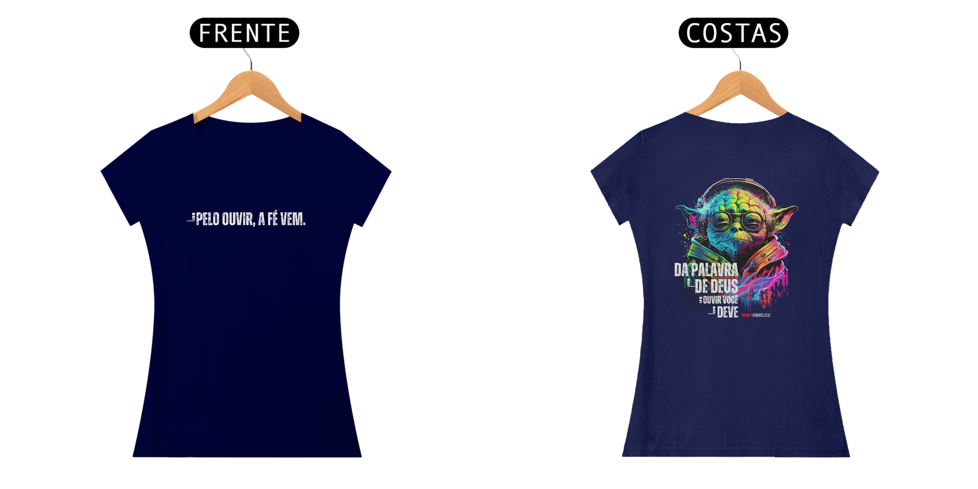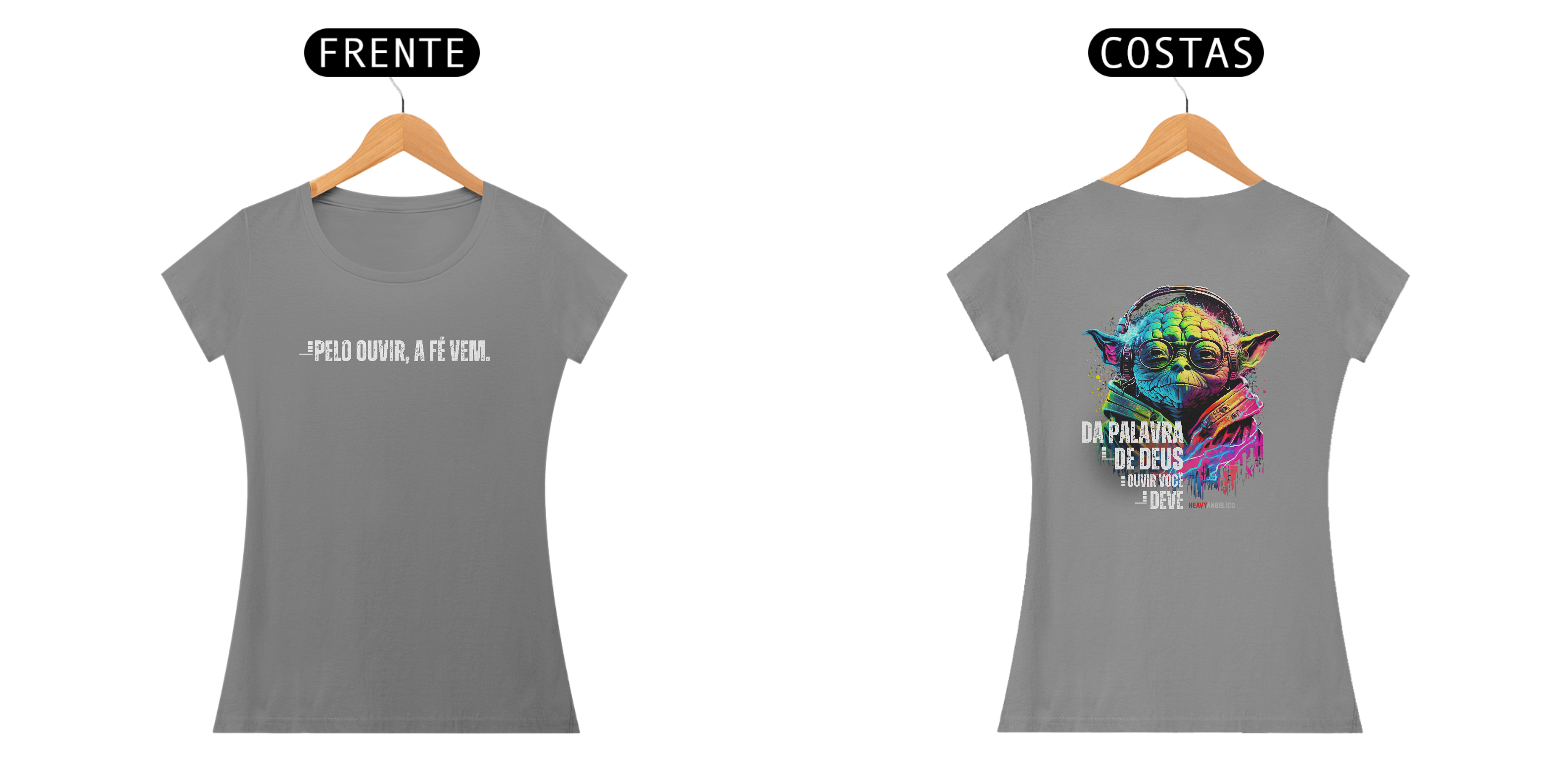 A sabedoria eterna agora com um toque geek e cheio de estilo! Esta estampa exclusiva da HeavyAngélico traz uma arte vibrante inspirada no Mestre Yoda, combinando cultura pop com um princípio bíblico fundamental: a fé vem pelo ouvir a Palavra de Deus.