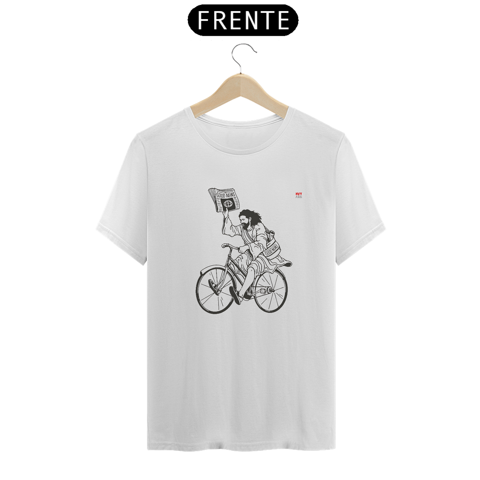 A mensagem precisa ser entregue — e ninguém melhor para isso do que Ele. A Camiseta Good News Delivery HVYANG traz um design ousado e autêntico: Jesus em uma bicicleta, como um entregador das boas novas, levando a verdade com velocidade e propósito. Uma peça para quem acredita, vive e veste sua fé com atitude.