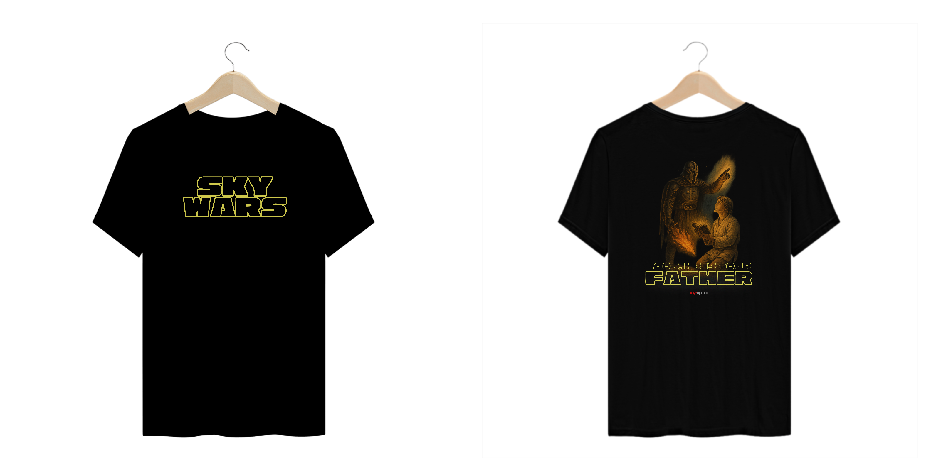 Nesta peça irreverente da HeavyAngélico, o clássico do cinema é reinterpretado sob a ótica da fé. A icônica frase “Look, He is your Father” ganha novo sentido quando a luz não vem de sabres, mas da verdade que liberta. Uma armadura medieval aponta para a Bíblia e revela quem é o verdadeiro Pai.
