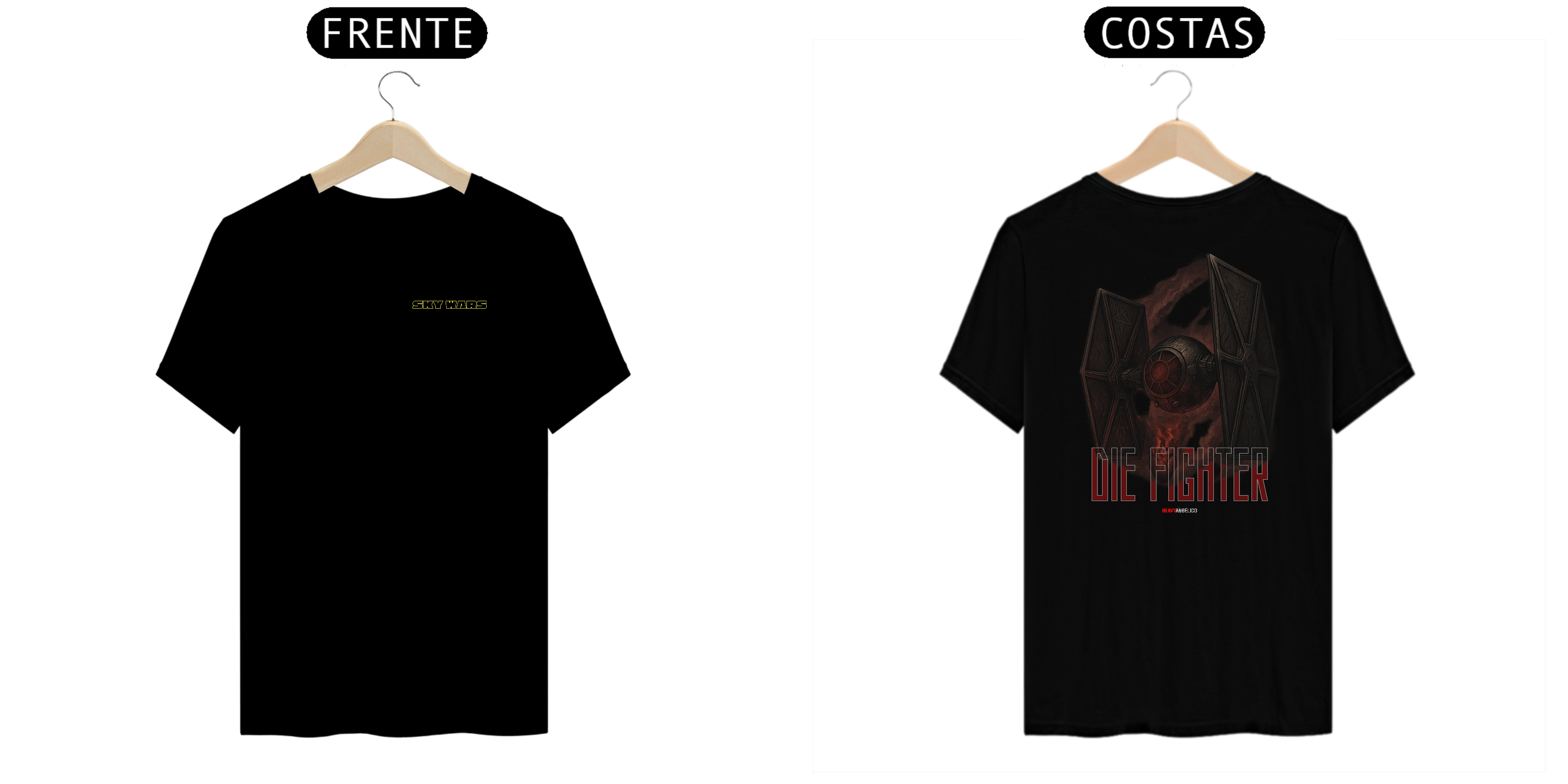 Nesta estampa ousada, a HeavyAngélico une cultura pop e verdade bíblica em um confronto direto com o ego. A clássica nave de batalha agora carrega o nome que todo cristão precisa entender: “Die Fighter” — aquele que luta, mas morre para si mesmo.